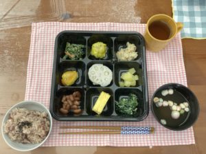 この日の昼食は、赤飯を含むお祝い膳でした。
