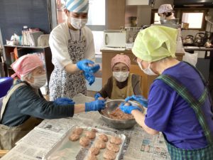 昼食クッキング「煮込みハンバーグ、冷製コーンスープ」