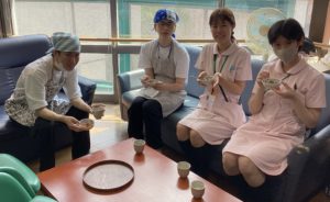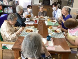 管理栄養士さんや実習生さん達もお手伝いに来てくださり、慌ただしくも楽しく美味しい食事ができました。