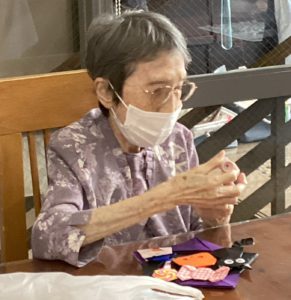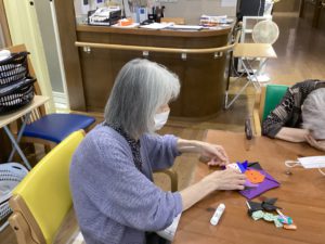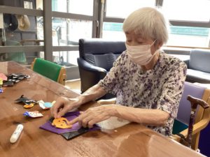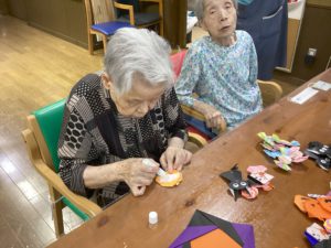 折り紙で作ったパーツを使って、皆様にハロウィンの飾りを作って頂きました。