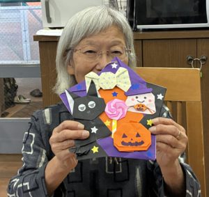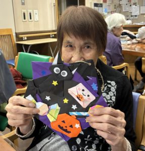 ハロウィンの作品作りを終えて、ご自身の作品と一緒に記念撮影を行いました。