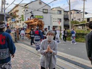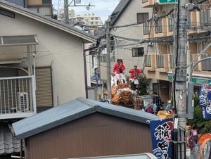 太鼓や鐘の音が遠くから聞こえてきたり、だんじりの近くへ見に行ったり、2階からのぞき見していました。