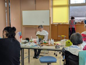 香寿庵のご利用者様はこの日、出張理容の方に散髪をして頂きました。