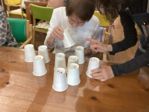 1~10の数字を書いた紙コップを、1から順番に重ねていきます。