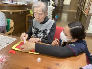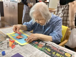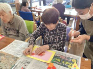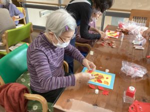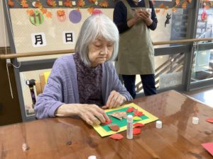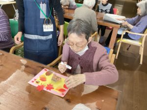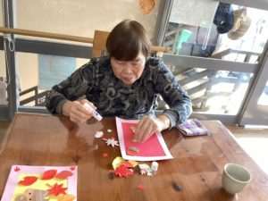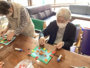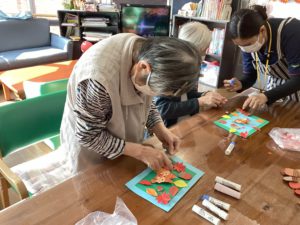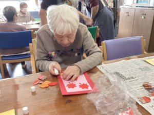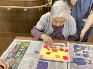 台紙を縦にするか横にするか、紅葉や栗鼠や団栗をどのように配置するか、皆様自身で考えて貼っておられました。