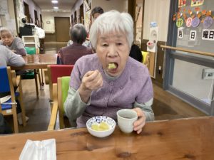 こちらは、皮をむいてカットしたさつま芋を召し上がって頂きました。