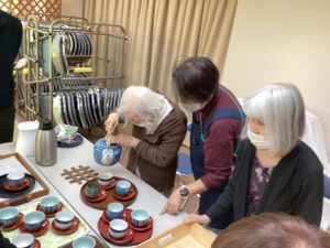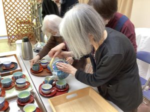 運営推進会議が始まる前に、香寿庵のご利用者様に緑茶をふるまって頂きました。