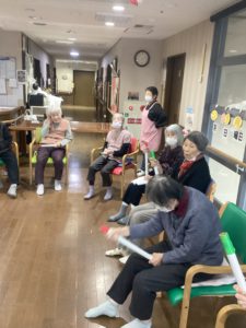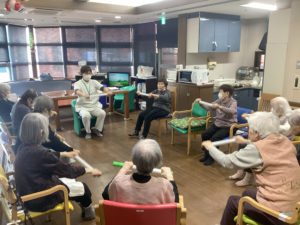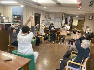 機能訓練指導員の上田さんが体操をしに来てくださりました。
