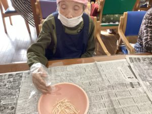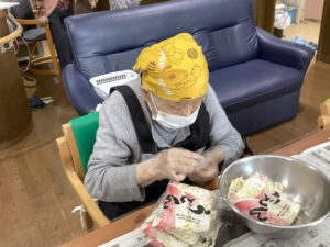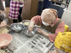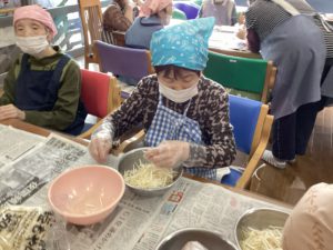 昼食クッキングで、野菜たっぷりけんちんうどんを作りました。