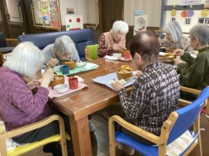 できた品々を盛り付けて配膳し、皆で美味しくいただきました。