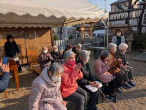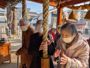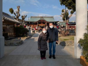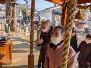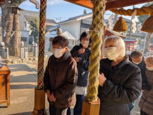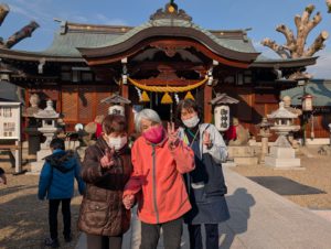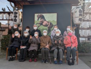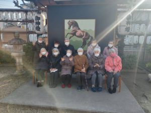 いつもの大きな絵馬の前で休憩して、皆で記念撮影。