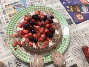 1月のお誕生日会の為に、チョコレートホイップのケーキを作りました。