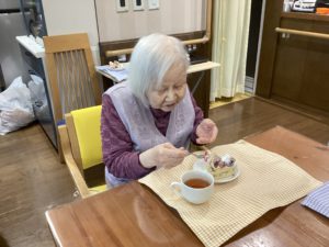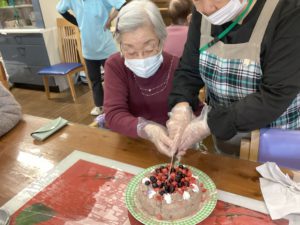 お誕生日のご利用者様へ、皆で「おめでとう」とお誕生日の歌を歌い、職員からはバースデイカードをプレゼントしました。