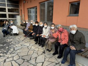 この日、テラスまで皆で散歩へ行くと・・・