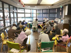機能訓練指導員の上田さんの体操には、皆様こぞって参加されます。
