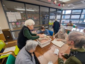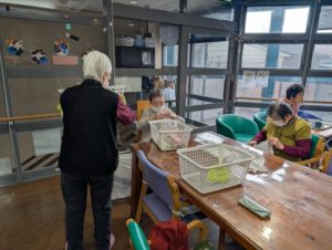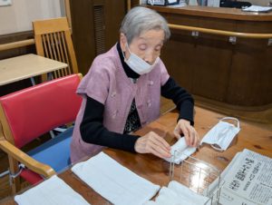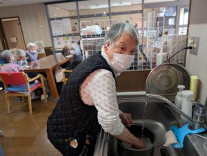 ご利用者様は隙間時間に洗濯物たたみ、洗濯物干しを皆で手伝ってくださります。