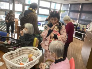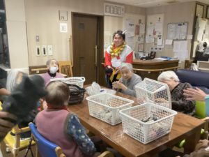 豆を投げられない心優しいご利用者様もいらっしゃいましたが、皆様、鬼の登場からおおいに盛り上がりました。
