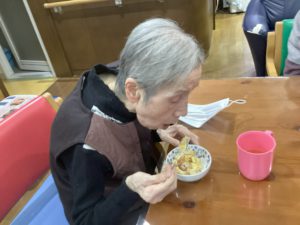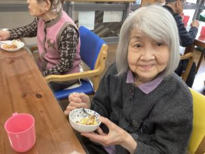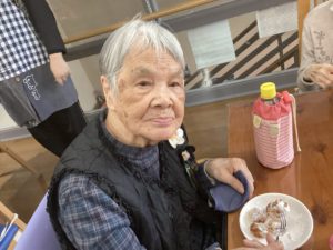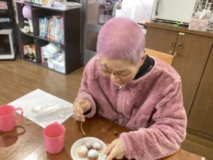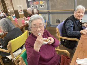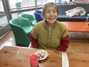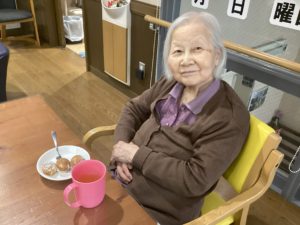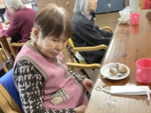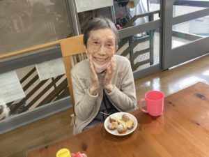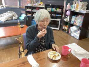 おやつの時間、バースデイソングを皆で歌い、職員からはバースデイカードをプレゼント。