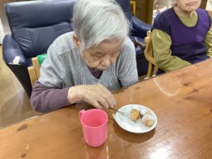 その後、皆で作ったベビーカステラと緑茶をいただきました。