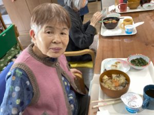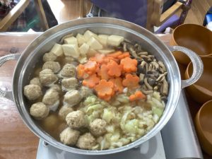 昼食に、お野菜たっぷりの生姜鍋をいただきました。