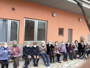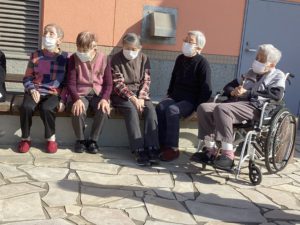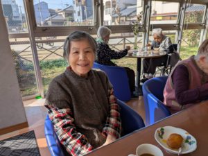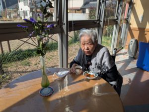 おやつの時間を過ごした後、少しテラスへ出て日向ぼっこ。