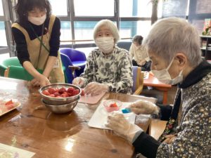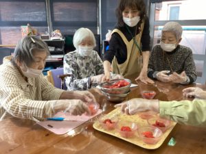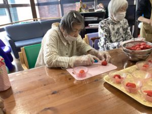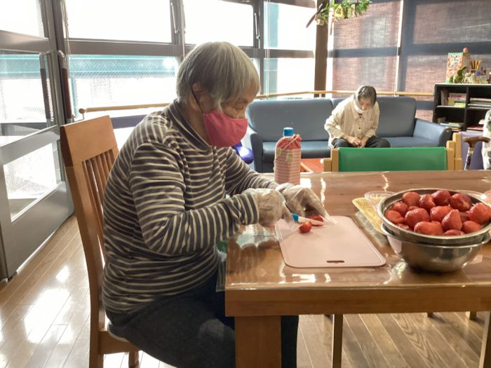 イチゴを洗って、ヘタをとって、盛り付けて練乳をかけて・・・