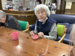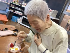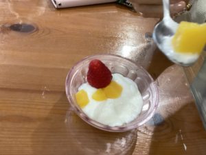 また別の日には、フルーチェの横にイチゴを乗せていただきました。