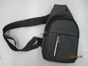 ①肩掛けバッグ(中に雨具のカッパがはいっています)