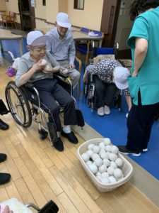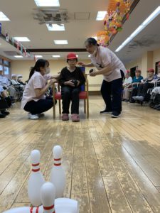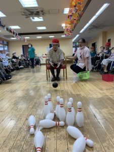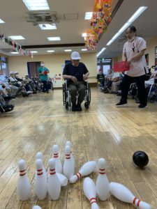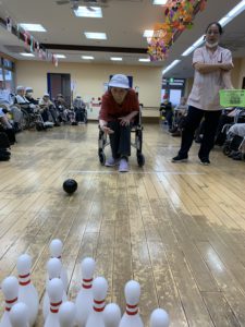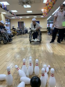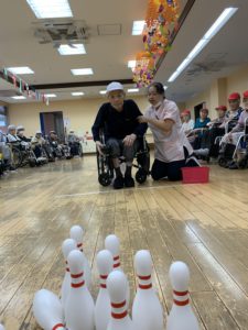 皆様こんにちは(^^♪ 昨日、日曜日に利用者様と運動会を行いました!各フロアーごとにわかれて、玉入れ、リレー、ボウリングをしましたよ✌ その様子をご覧ください。