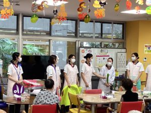 実習生の皆さん利用者様に向けて、歯磨きの正しい磨き方や