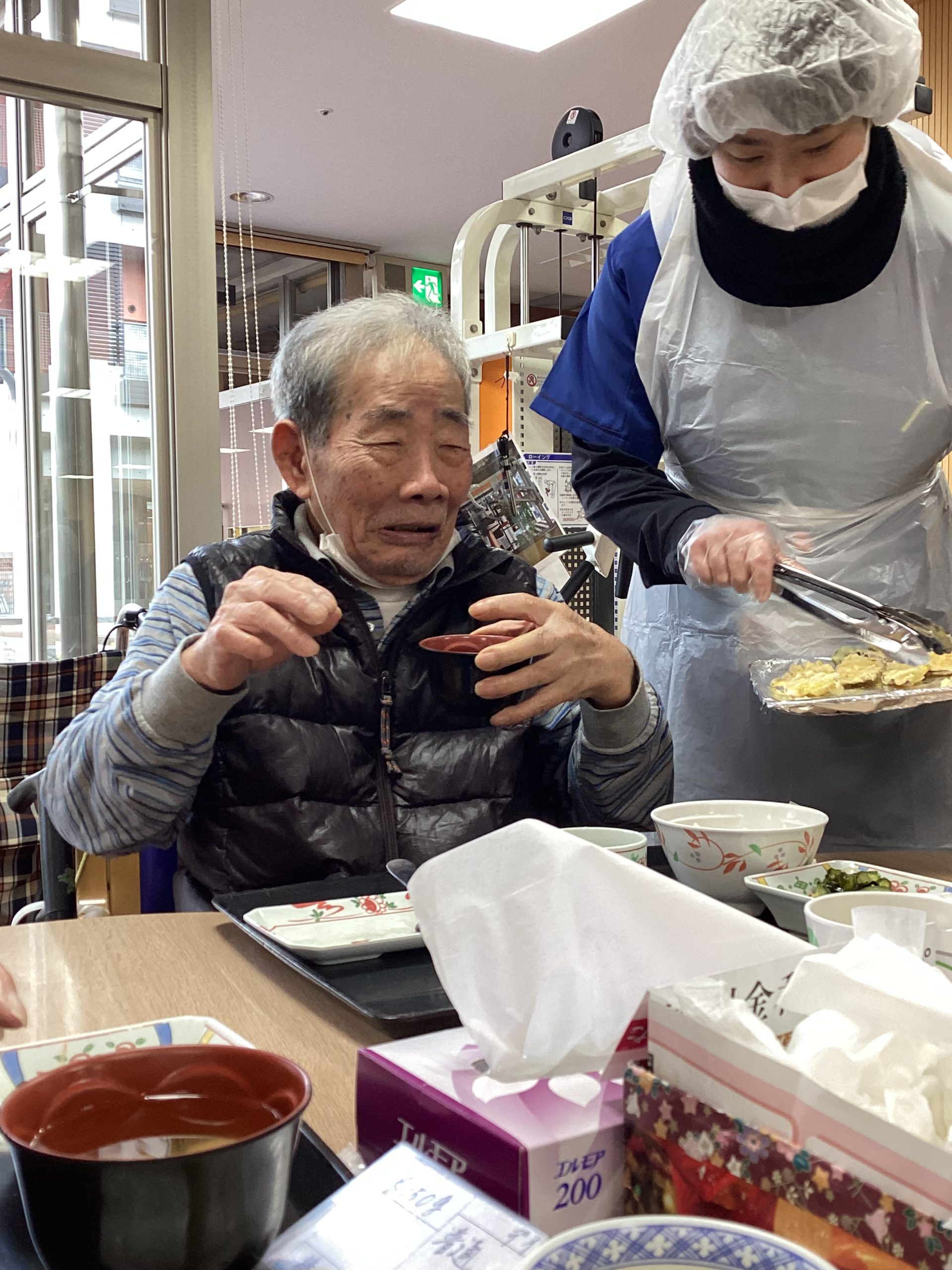 デイケア新年の初めは揚げたて天ぷら!!