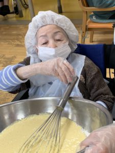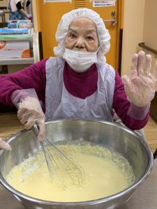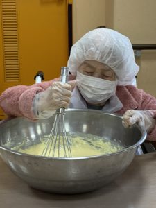 まずはホットケーキの生地を混ぜて頂きます!ホットケーキMIXを加えると、だんだん混ぜるのが重くなります。皆さんで交代しながら頑張って生地を完成して頂きました💪🏻💪🏻💪🏻