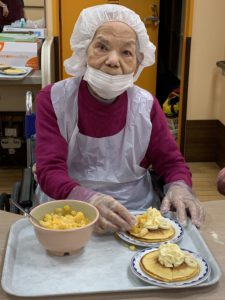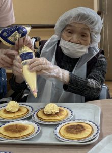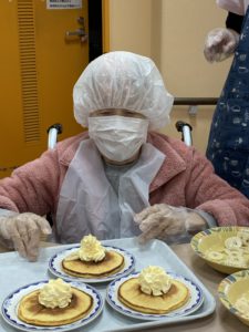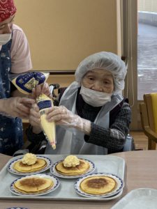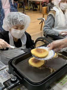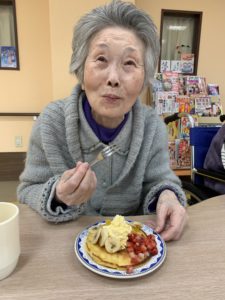 今月は生活介護課の職員が企画したホットケーキを提供しました😍
