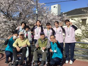 桜も満開になったので本日は、利用者様と今年入職された職員さんで桜を見に行かせて頂きました!