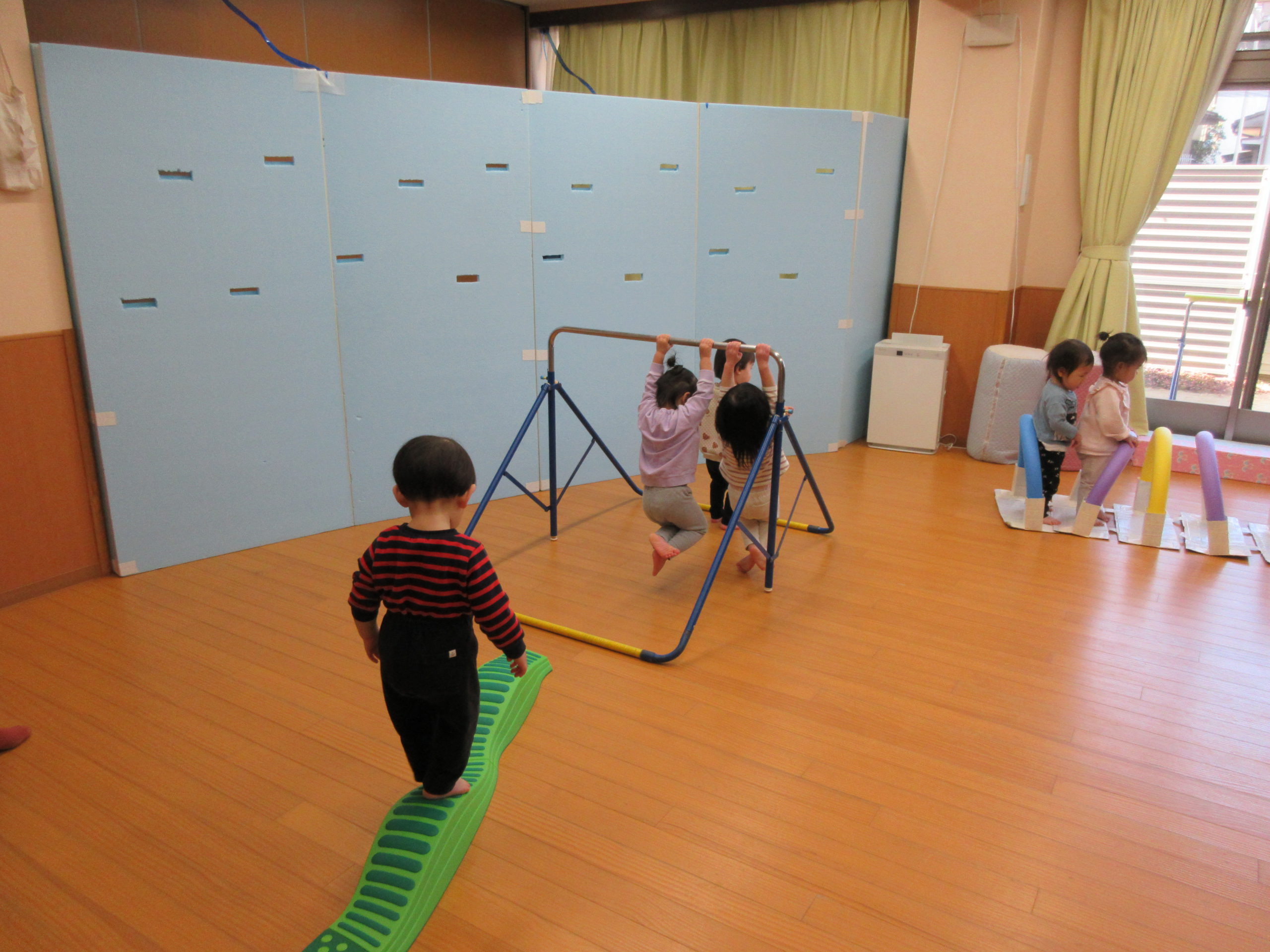 朝おやつが言わると各クラスの活動です。参観期間中、園庭遊びやお散歩、おひさまホール、小麦粉粘土など様々な活動から、普段の子どもたちの様子を見ていただきました。