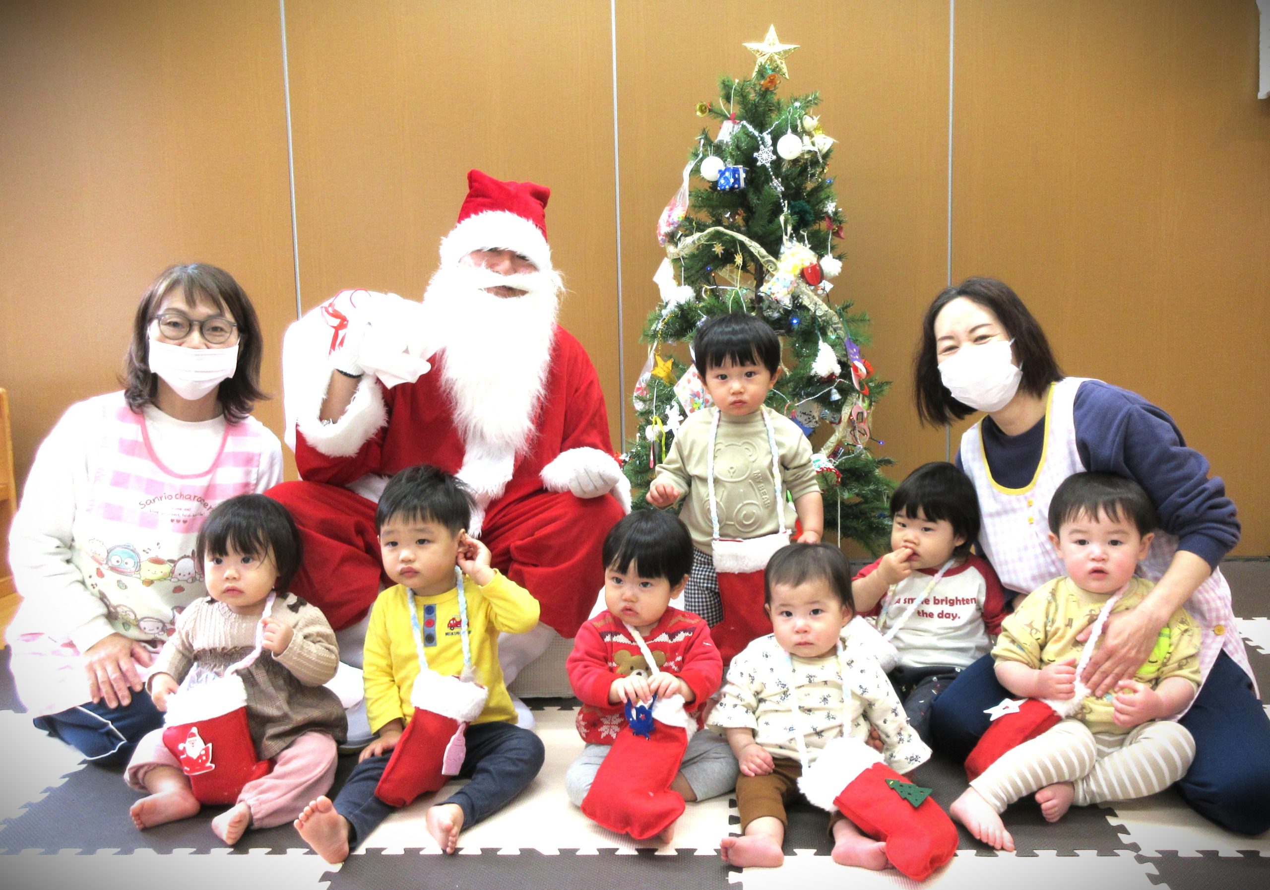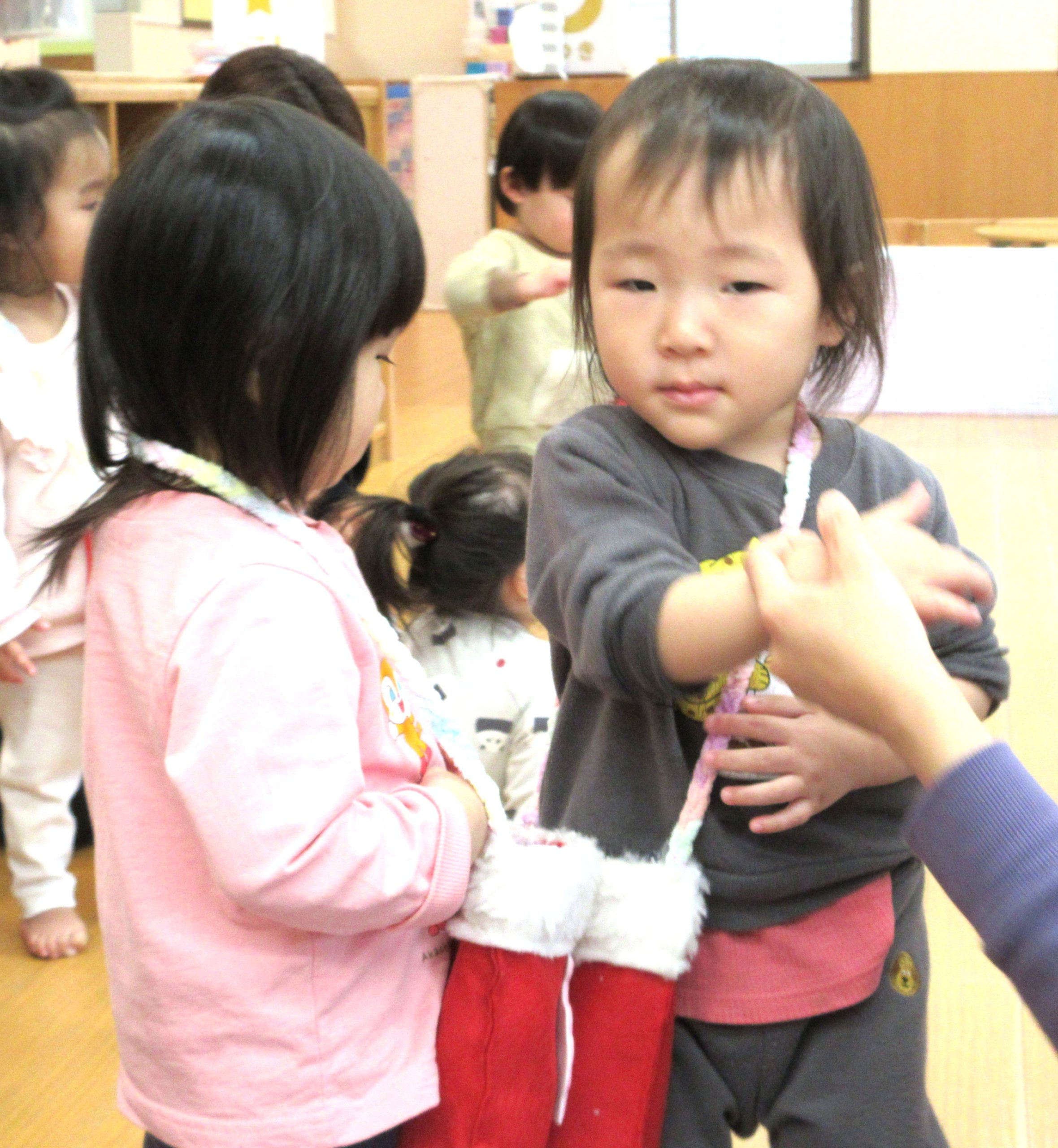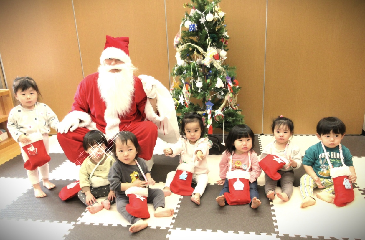 「え!?サンタさん!?」子どもたちは前へ前へ…興味津々です。