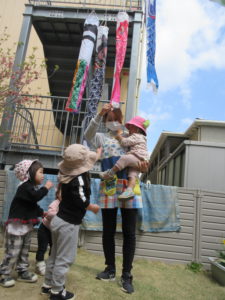 4月15日(火)こどもの日の集いがありました とても良い天気になり みんなで園庭に出て 鯉のぼりの登場に目を輝かせていました
