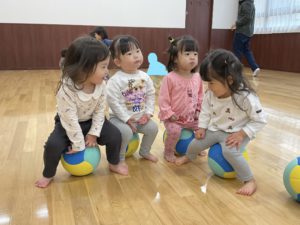 4月中は、新しい環境に慣れることができるよう、お部屋でゆったり遊んだり、おひさまホールや屋上で体を動かして遊びました♩