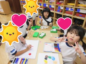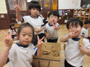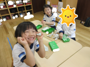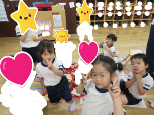 カメラを向け、「ハイチーズ!」っと、声を掛けると、満面の可愛らしい笑顔を見せてくれたり、粘土遊びでは指先もだいぶ器用に使えるようになり、細かい物を粘土で作れるようにもなってきている子ども達です😋