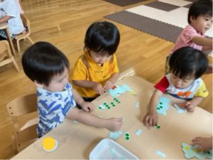 こんにちは! アーバンチャイルドこども園上町 ぱんじー組担任の宮地です。