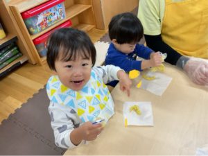 「できた!」と嬉しそうに味わう姿から、食への関心が広がる様子が感じられました。