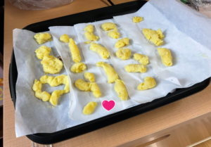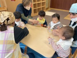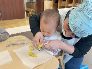 クッキーを焼いている間には、「いい匂いする~!」「バターの匂いする!」など、沢山お話をしてくれました!みんな上手に作る事ができ大成功でした😍