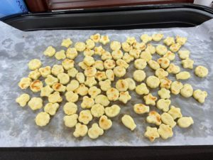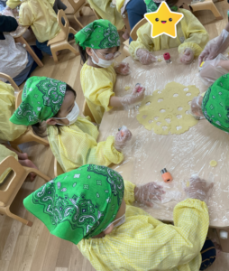 おやき作りでは、子どもたちは袋の中にさつま芋を入れ潰して、その後自分の好きな形に絞った生地を焼きました。子どもたちは美味しそうに食べてくれました!