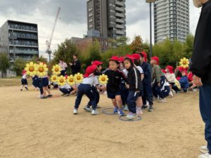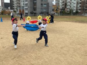 本来はお店屋さんごっこをする予定でしたが、急遽変更してお外でリレーをして遊びました!スキップリレーやボール運びリレーを通して競い合う楽しさや、気持ちを一つにして協力することも経験できました✨また交流できたらなと思います!