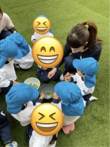 一人ひとりスナップエンドウを選んで、細かい作業ではありましたが、自分たちでさいていましたよ😊給食にもスナップエンドウが出てきて、自分で収穫したこともあり、ぺろっと食べていました😊
