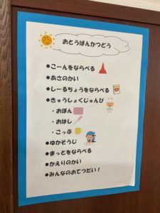 お当番では、自分たちで何をするのか考えて話し合い、お当番の活動内容を決めました。