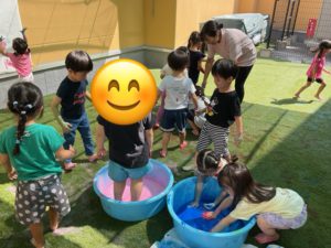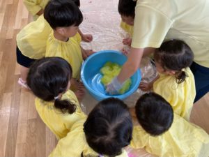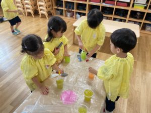 その後は2色を混ぜたり、コップに入れてスプーンで混ぜたりジュース屋さんが開店したりと楽しんでくれていました🍹