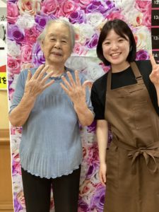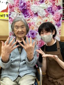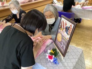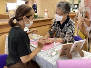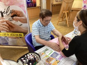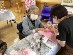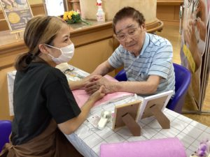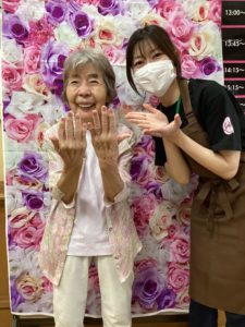 この日は、女性お2人の方にデイサービスの体験に来てもらい、ネイルをして頂きました✨✨綺麗なったわーと大変喜んでくださり、デイサービスの体験を楽しんで頂く事ができました♪