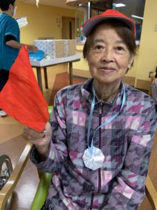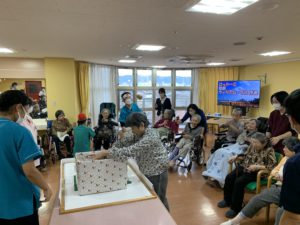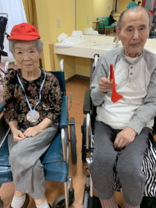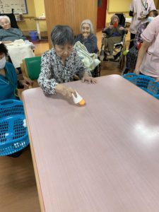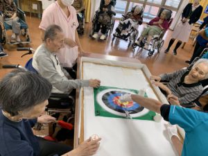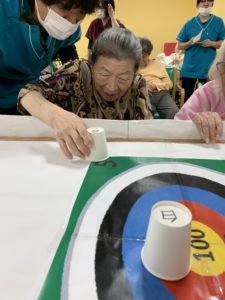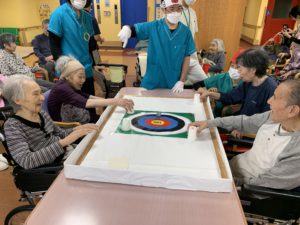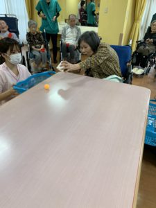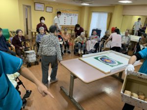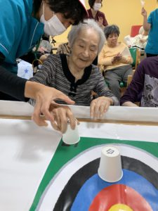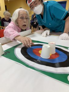 準備体操をしてから、テーブルカーリングや、移動玉入れ、ボールキャッチなどをして、たくさん身体を動かしました💪