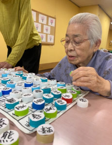 台紙に漢字を書き、ペットボトルのキャップに、漢字を書いた紙を貼りつけて同じ漢字を合わせていきます。びっくりするくらい、皆様集中されていました😲